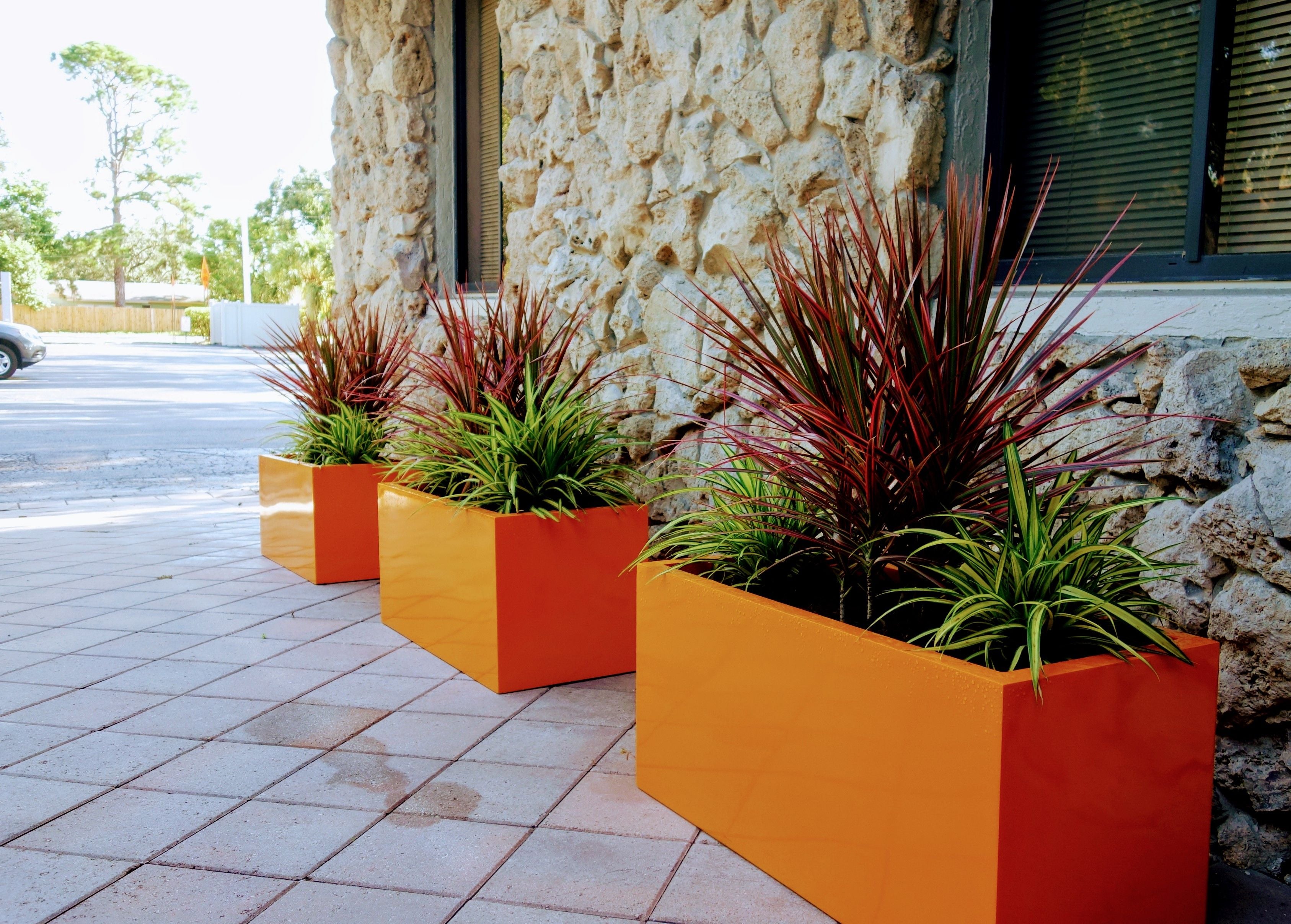Your planters are finished with an automotive paint that offers many advantages including UV resistance and can withstand extreme conditions. While our top coat paint used is very durable, storing planters in wet or steamy cartons or standing water can cause damage to the finish. Normal use allowing water to immediately drain o the finish after installation will not cause any harm.